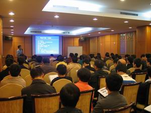 高素质、专业的讲师阵容、适用富厚的课程内容及中科任你博举行培训班的名气,,,吸引了来自天下各地的医学事情者踊跃报名。。。至报名阻止日,,,报名人数已达八十多人,,,已远远凌驾原定的60人。。。报到当天,,,尚有不少学员不期而至,,,报到现场火爆,,,共到会学员剧增至一百来人。。。唬唬会务组立即增添人手,,,并暂时上课所在由小聚会室搬家至大蹊径聚会室。。。学员均是来自多个省市级医院的放射科诊断医生、磁共振技师、磁共振生产厂家的应用培训专家、产品专员及研发职员等。。。